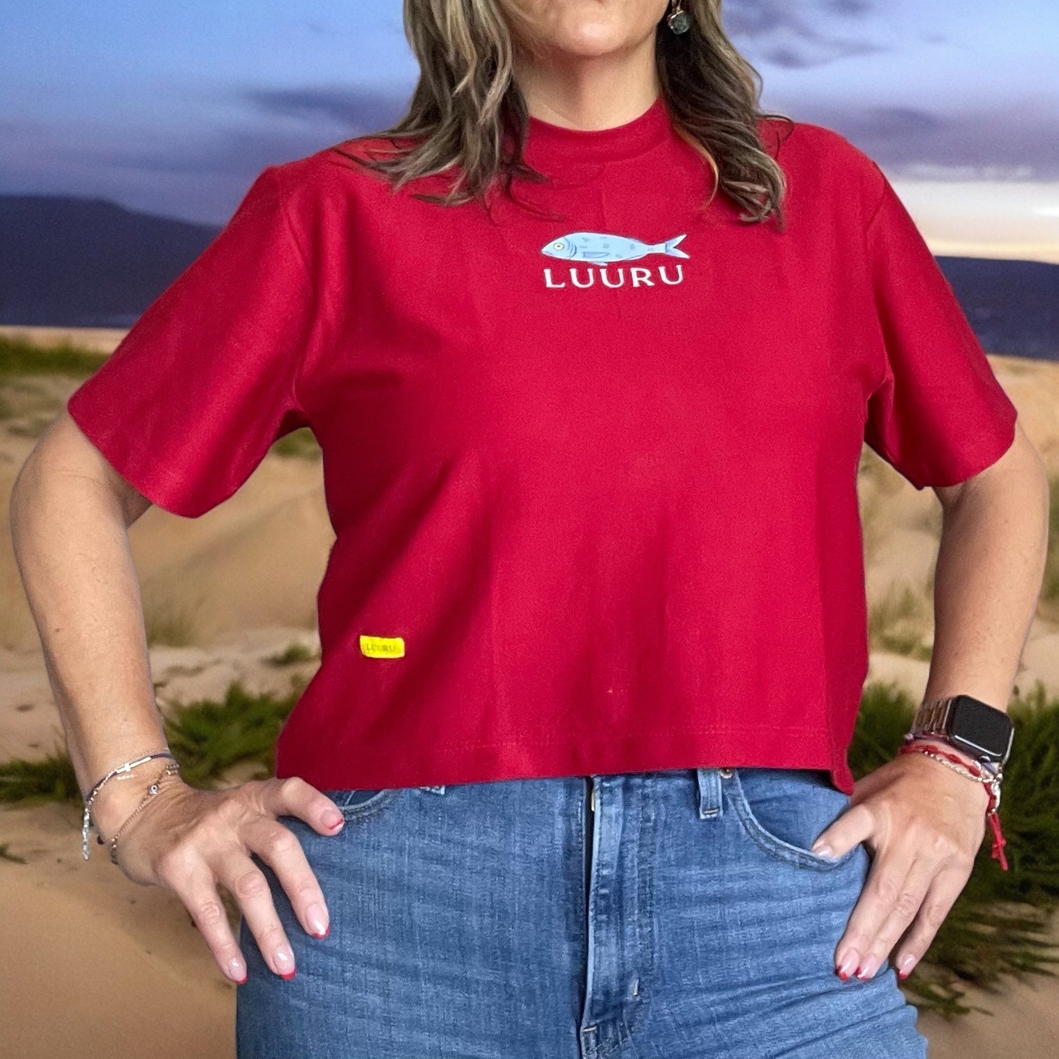 Women’s Crop T-Shirt – 100% Pima Cotton with Small Fish Design crew-neck- Regular price