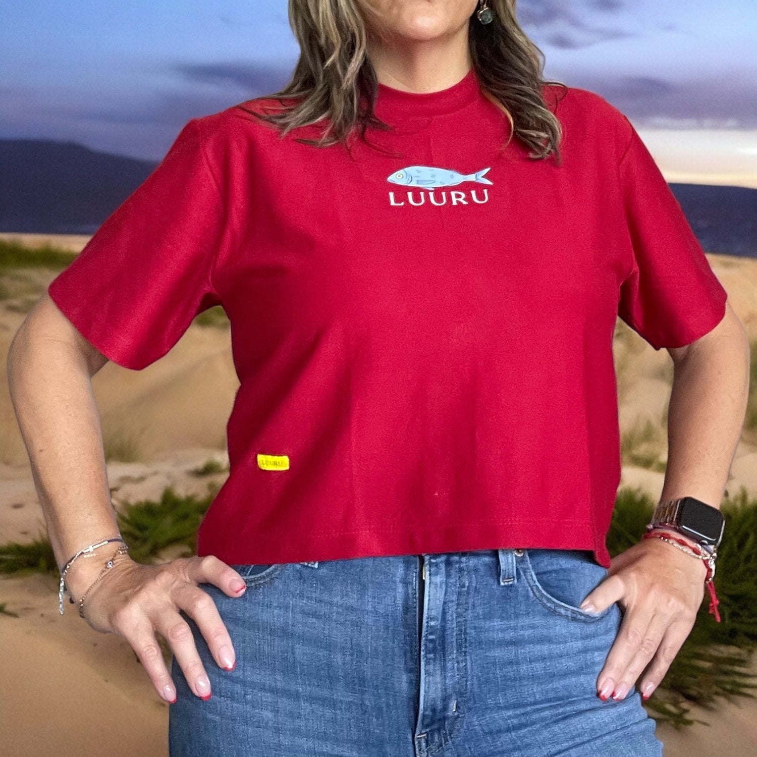 Women’s Crop T-Shirt – 100% Pima Cotton with Small Fish Design crew-neckWomen’s Crop T-Shirt – 100% Pima Cotton with Small Fish Design crew-neck